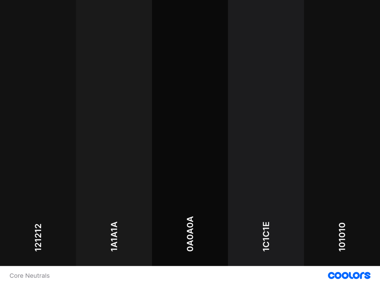 These are your functional near-blacks. Clean, consistent, and dependable. Designed for containers, dark themes, text, and anything that needs to feel intentional without calling attention to itself.