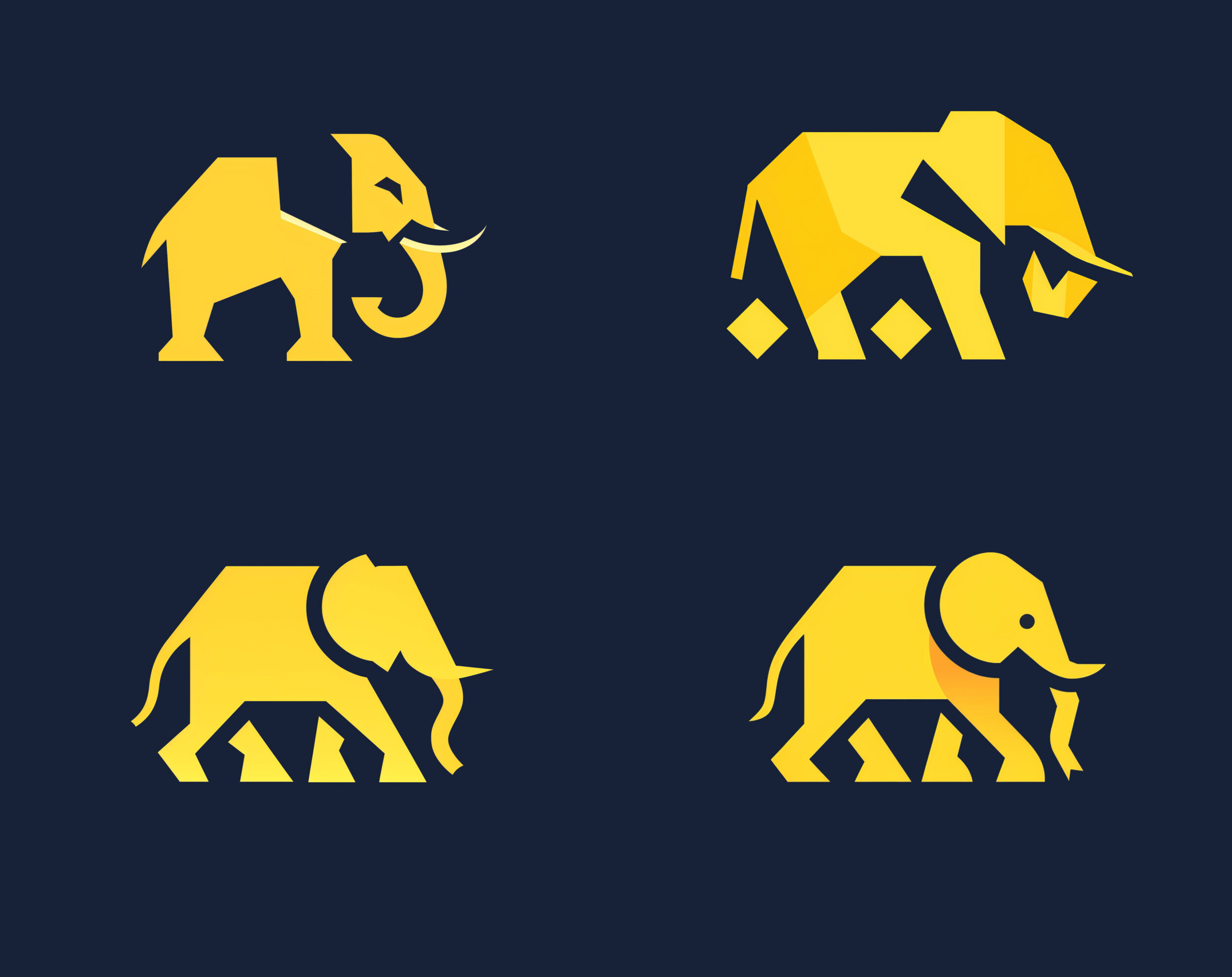 The final elephant symbol was born from dozens of vector studies testing proportion, abstraction, and rhythm. Early sketches explored blocky and hyper-faceted forms before converging on a mark that felt engineered yet expressive.