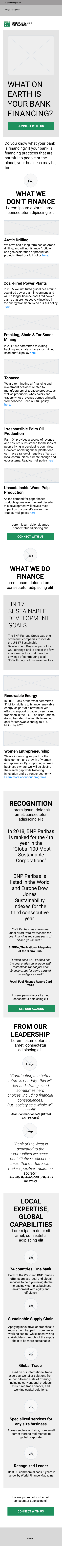 - Hero section poses a provocative question—“What on Earth is your bank financing?”—to spark curiosity and frame the microsite’s ethical stance.