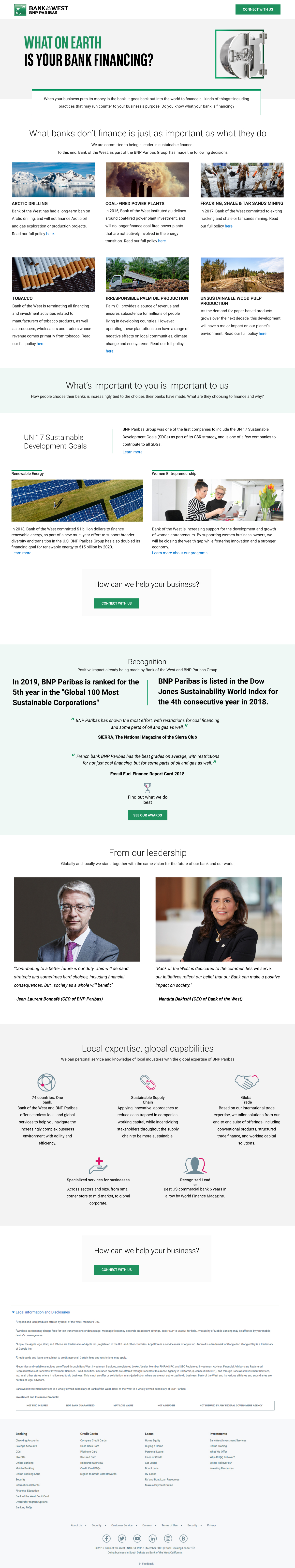 - Recognition and leadership sections add credibility, aligning with Bank of the West’s placement on the Dow Jones Sustainability Index.